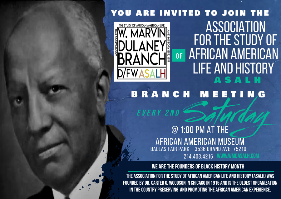 Co-sponsored by the African American Museum and the DFW Branch of the Study for the African American Life and History (ASALH)